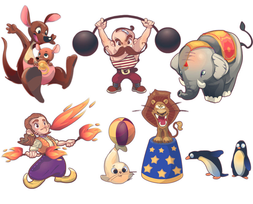 Character design and concepts for Adventure Park Facebook game